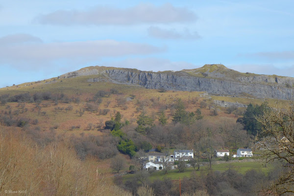 I pass another abandoned quarry and as I was taking this photo through the trees (above), I realise that this is a nearly perfect portrait of the valleys; "Abandoned". Whilst on the opposite side, I look back toward the hill and Morlais Castle. The valley is beginning to widen and I test the telescopic lense on my camera (below).